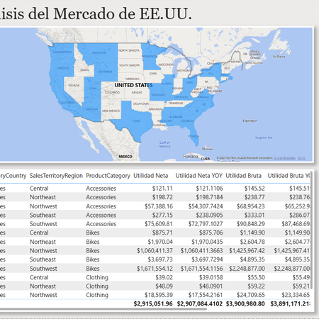 Adventure Works Cycles (AWC), multinacional dedicada a la fabricación y distribución de bicicletas y accesorios en Norteamérica, Europa y Asia, desarrolló un informe integral en Power BI para mejorar la toma de decisiones estratégicas.